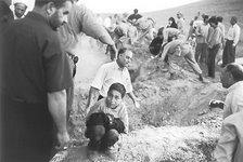 Soldados e aldeãos cavam sepulturas para as vítimas de