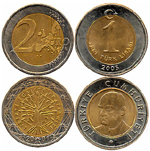 Estejam por isso atentos, e verifiquem bem se as vossas moedas de 2 euros não se tratam de liras turcas, porque as ditas já começaram a circular.
